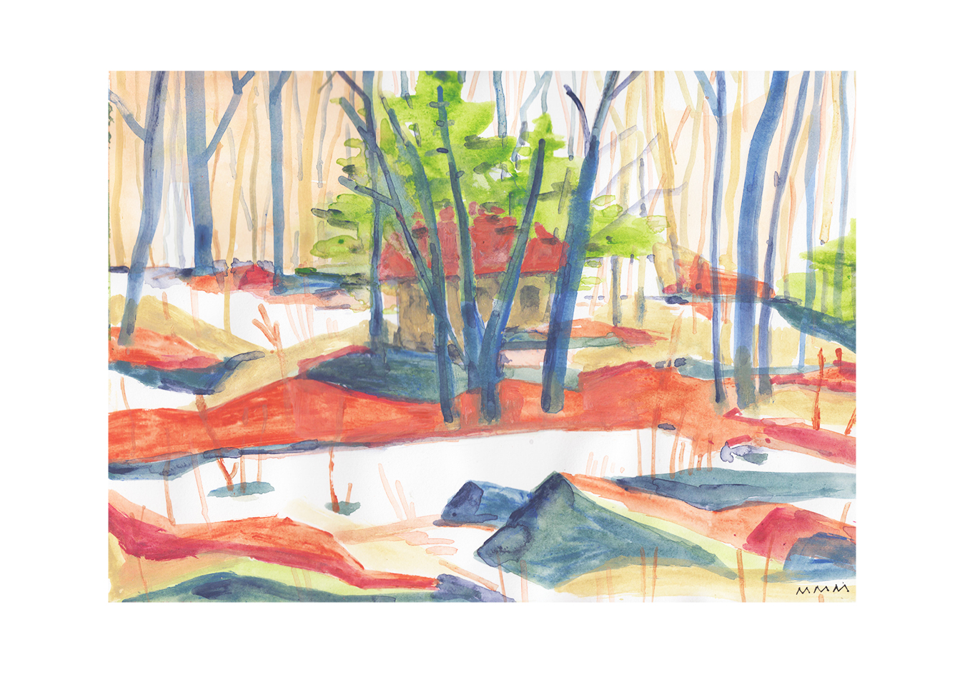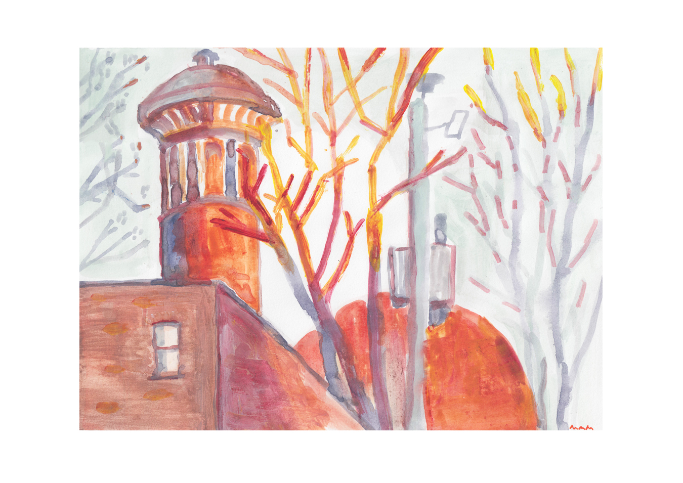 Acrylic and watercolour on paper.